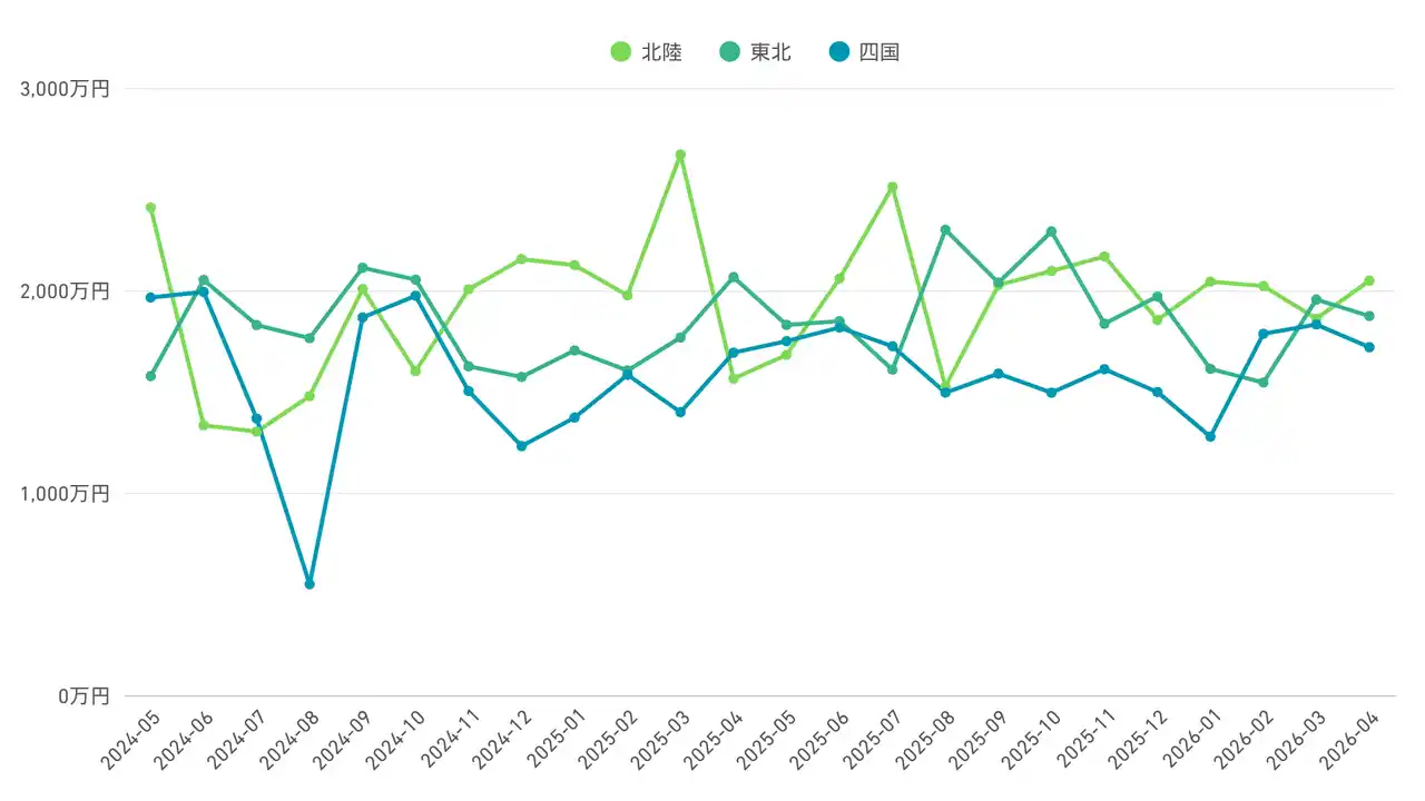 特に、全国地域での調査の結果、四国・東北・北陸の3地域での下落が確認されました。 |