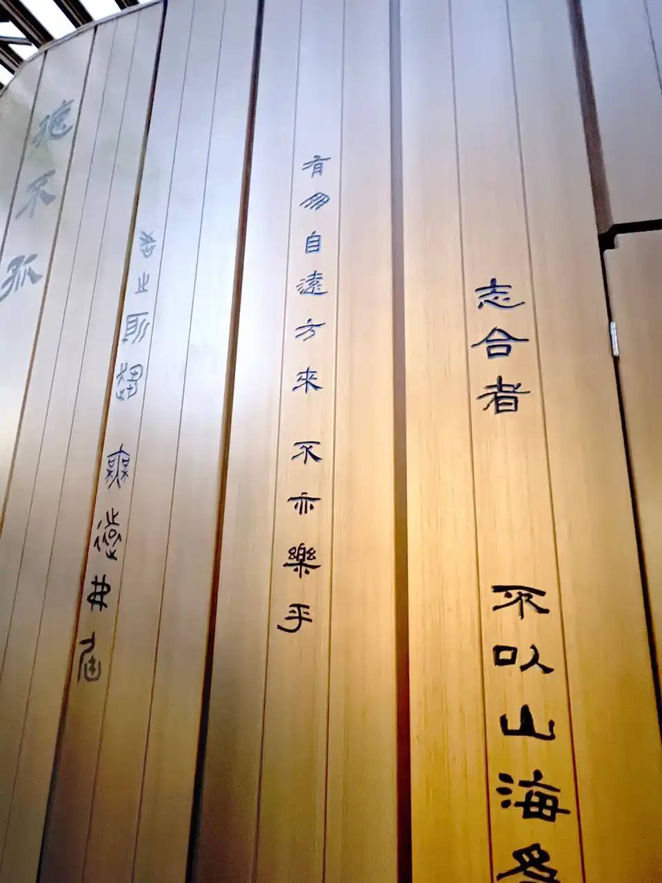 2025年大阪・関西万博の中国パビリオンは、「自然と共に生きるコミュニティの構築 -グリーン発展の未来社会-」をテーマに、自然に由来し、自然に順応し、自然と調和して生きる中国文化を表現する展示物の数々が、壮大な演出と最新技術とともに展示されました。中国パビリオンは、その特徴的な外観も魅力の1つで、古代の竹簡でできた巻物を広げたような外壁には、中国の書道でさまざまな言葉が書かれていました。その中の1つ、日本でも有名な論語の一節「有朋自遠方来 不亦楽乎」(友あり遠方より来る。また楽しからずや。)が刻まれた外壁パネルが、万博による両国の交流を記念する証として、中国パビリオンおよび中国国際貿易促進委員会より、関西国際空港に寄贈されました。 |