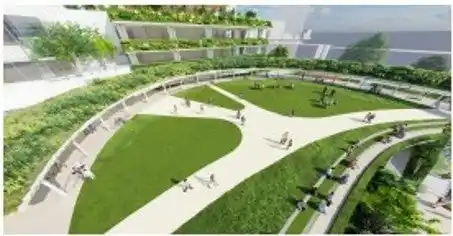 立体的に緑化空間を整備し周辺の公園とつながる緑のネットワークを形成します。 |