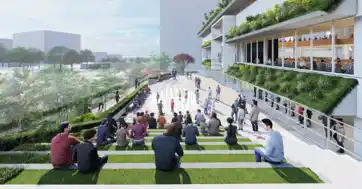 緑豊かな外広場と階段広場が連続し、日常的に市民が集まれる居場所をつくるとともに、様々なイベントの開催によってにぎわいを生み出し、活気ある空間を形成します。 |