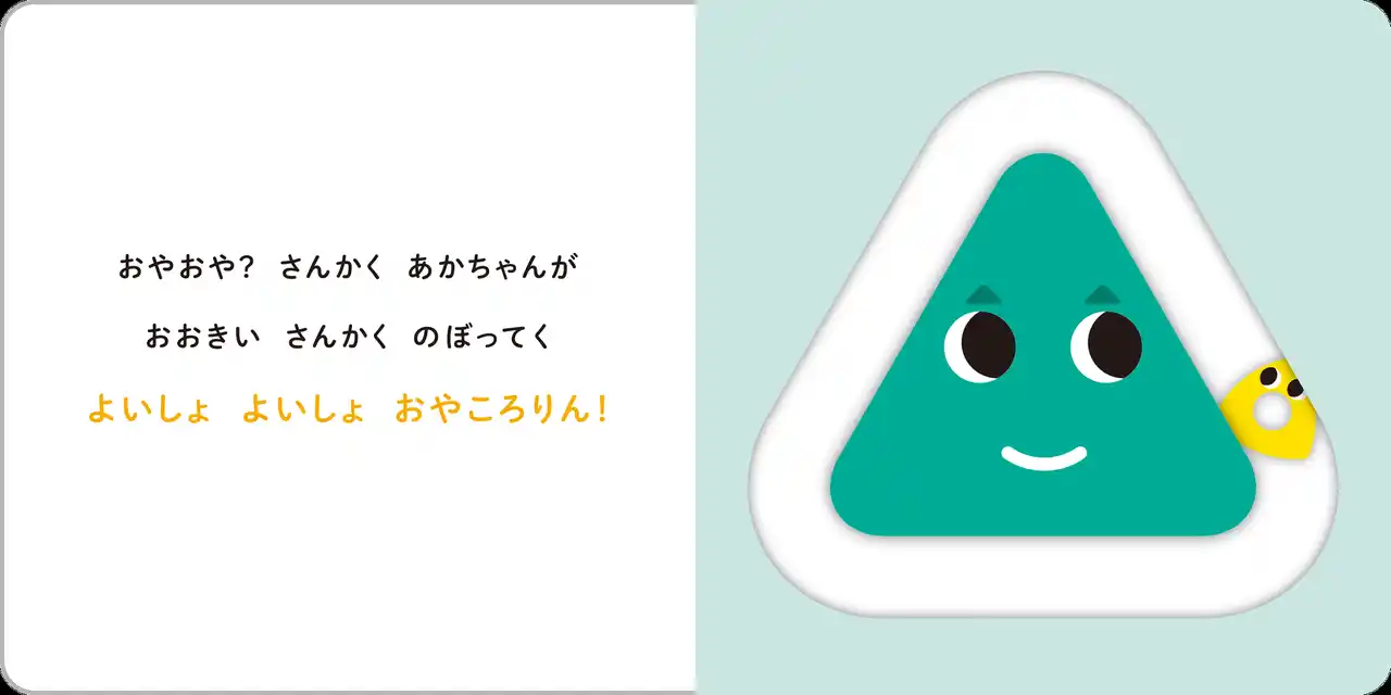 | 10周年を記念した最新刊『おや?ころりん!』は、このシリーズを代表する絵本『ころりん・ぱ!』に、新機軸のアイデアを加えた絵本です。これまでの作品は、丸いパーツがレールを転がるしかけが最大の特徴でしたが、『おや?ころりん!』は、パーツの形が楕円、三角、四角と様々。「形のちがいを楽しんで欲しい」という作者ひらぎみつえさんの気持ちがこめられた意欲作です。 | ||||||||||||||