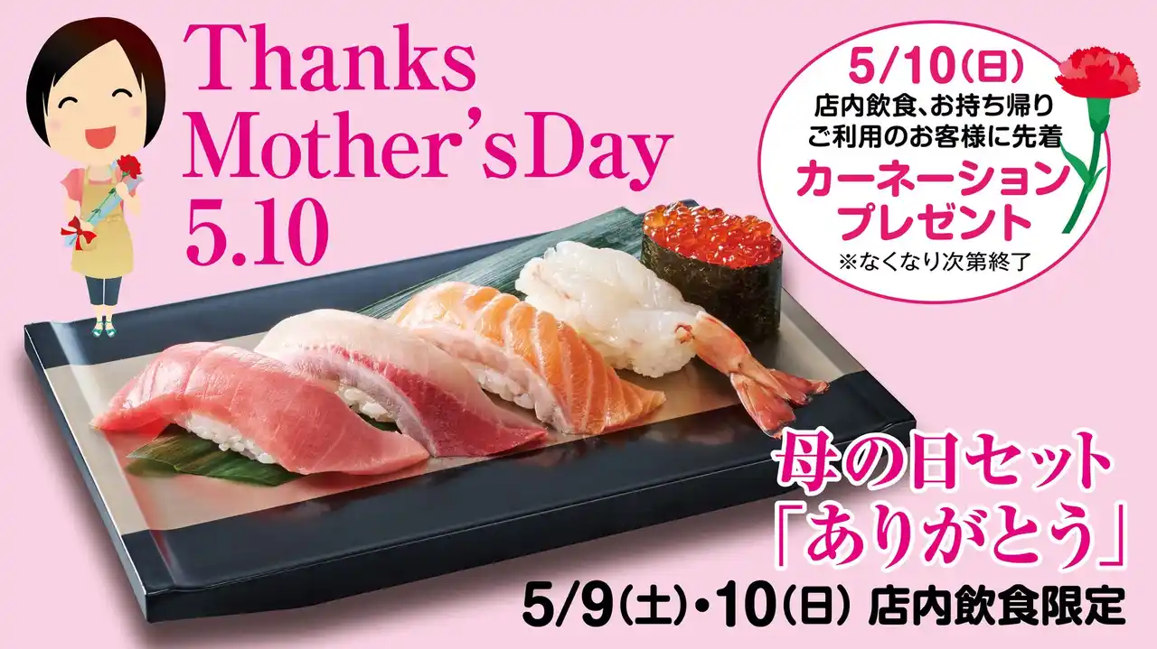 | 店内飲食・お持ち帰りご利用のお客様へ先着でカーネーションを進呈いたします。 | |||