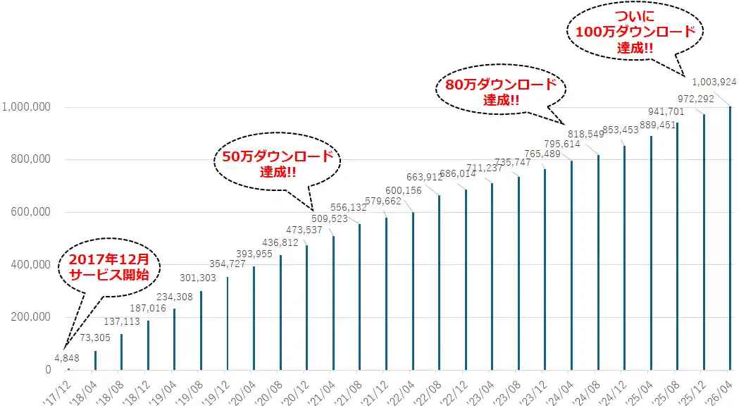 累計ダウンロード件数、ついに100万件を達成!! |