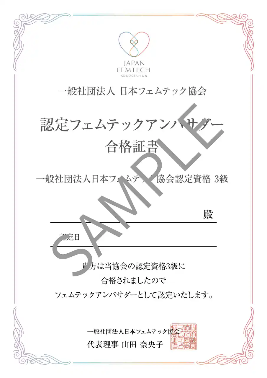 認定資格3級は、受験者数10万人を突破した、スマホやPCから“3分で受験できる無料の認定資格”です。性差による健康課題やフェムテックの基礎を、クイズ形式で手軽に学ぶことができます。 |