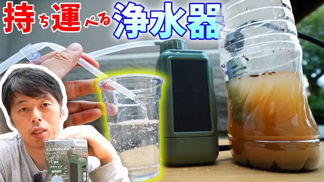 人気動画クリエイター「ともさん」のYouTubeでも紹介され、現在話題沸騰中! 動画では、ドロドロに濁った水が、あっという間に透き通ったキレイな水に変わる驚きの様子が公開されています。果たして浄水を使って淹れたコーヒーのお味は? 手動でポンピングする必要はなく、電動で毎分700mlもスピーディーに浄水できるのが最大の魅力です。 |