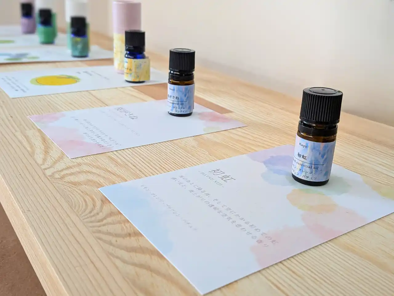 現在は既存製品4種類に加え、オリジナルアロマオイル2種類を常設。オリジナルオイルは2か月ごとに内容を刷新し、継続的に新しい香りを楽しめる環境を整えています。 |
