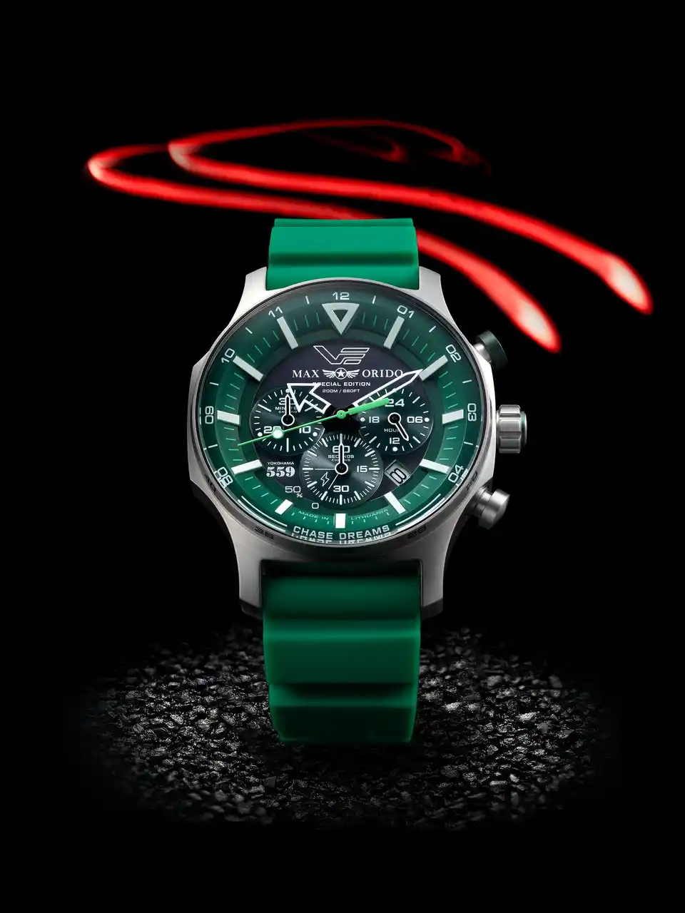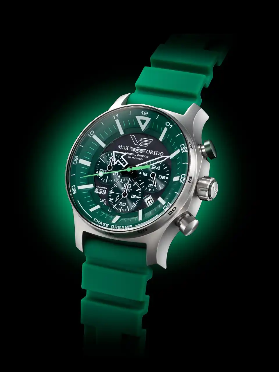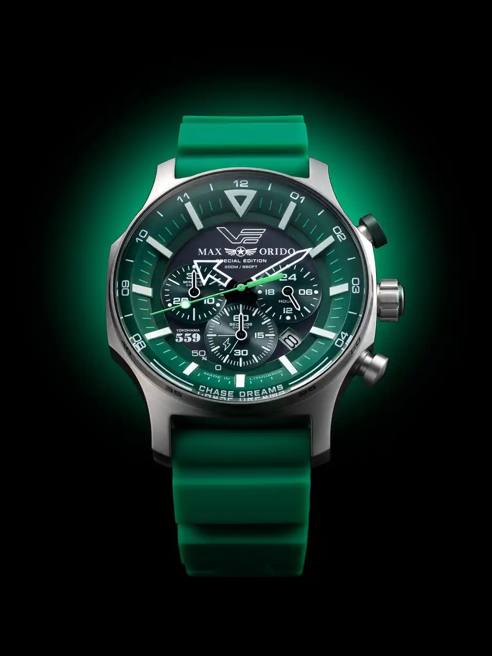 本モデルは、織戸選手の象徴カラーであるグリーンを基調にデザインされた特別仕様。VOSTOK EUROPEの人気ソーラーモデルをベースに、タフネスと実用性を追求したソーラーパワー・クロノグラフとして仕上げられています。 |