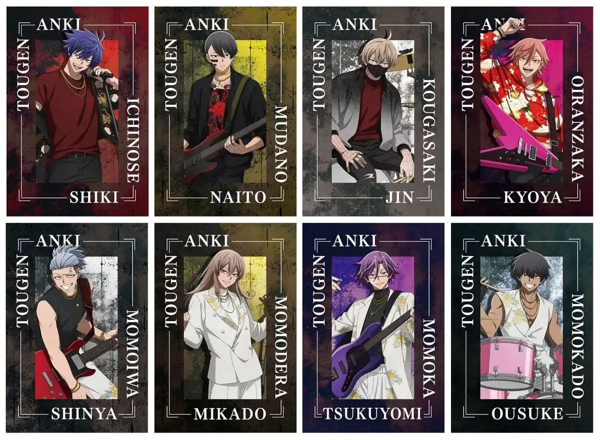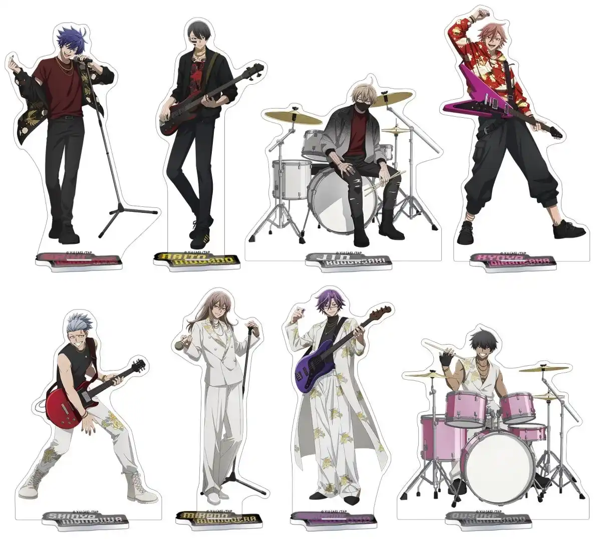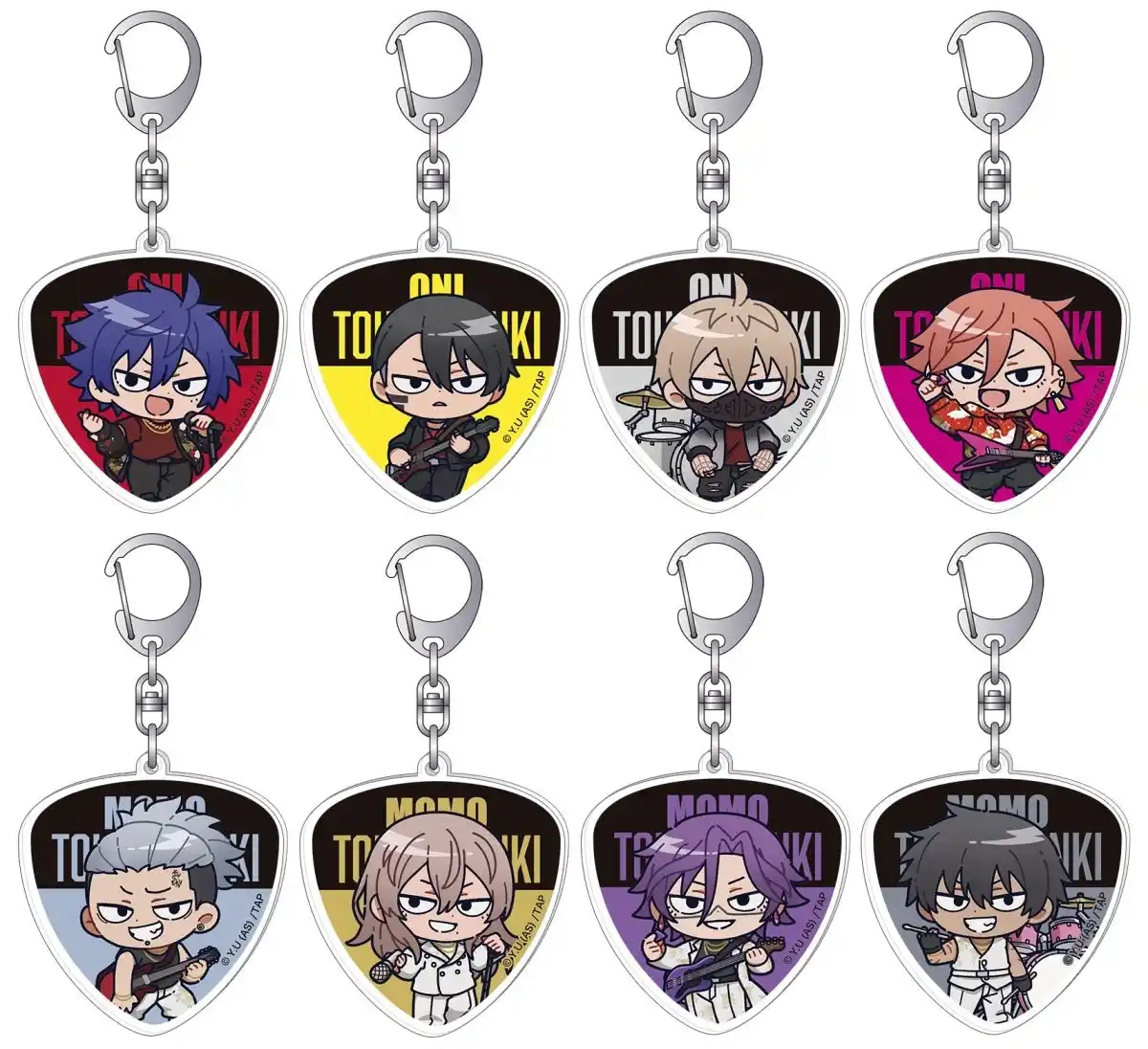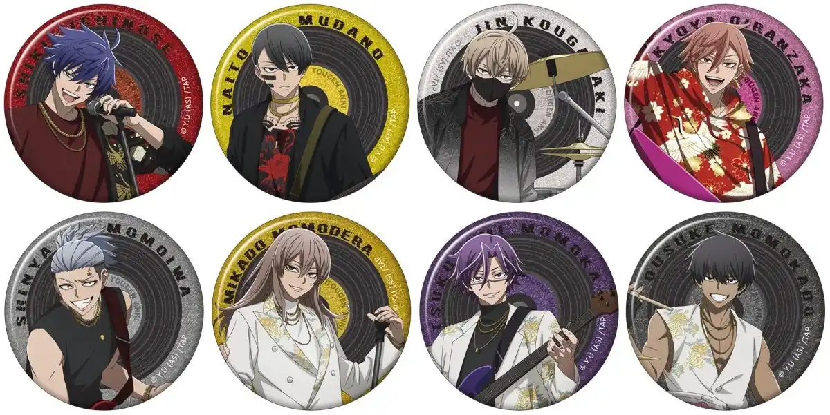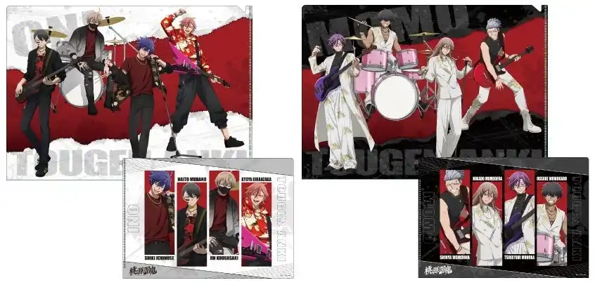 | 鬼機関からは四季・無陀野・皇后崎・花魁坂、桃太郎機関からは深夜・神門・月詠・桜介が新商品に登場! 対バンをテーマに、楽器やマイクを手に躍動する新規イラストを使用した商品が盛りだくさん! | ||||||||||||