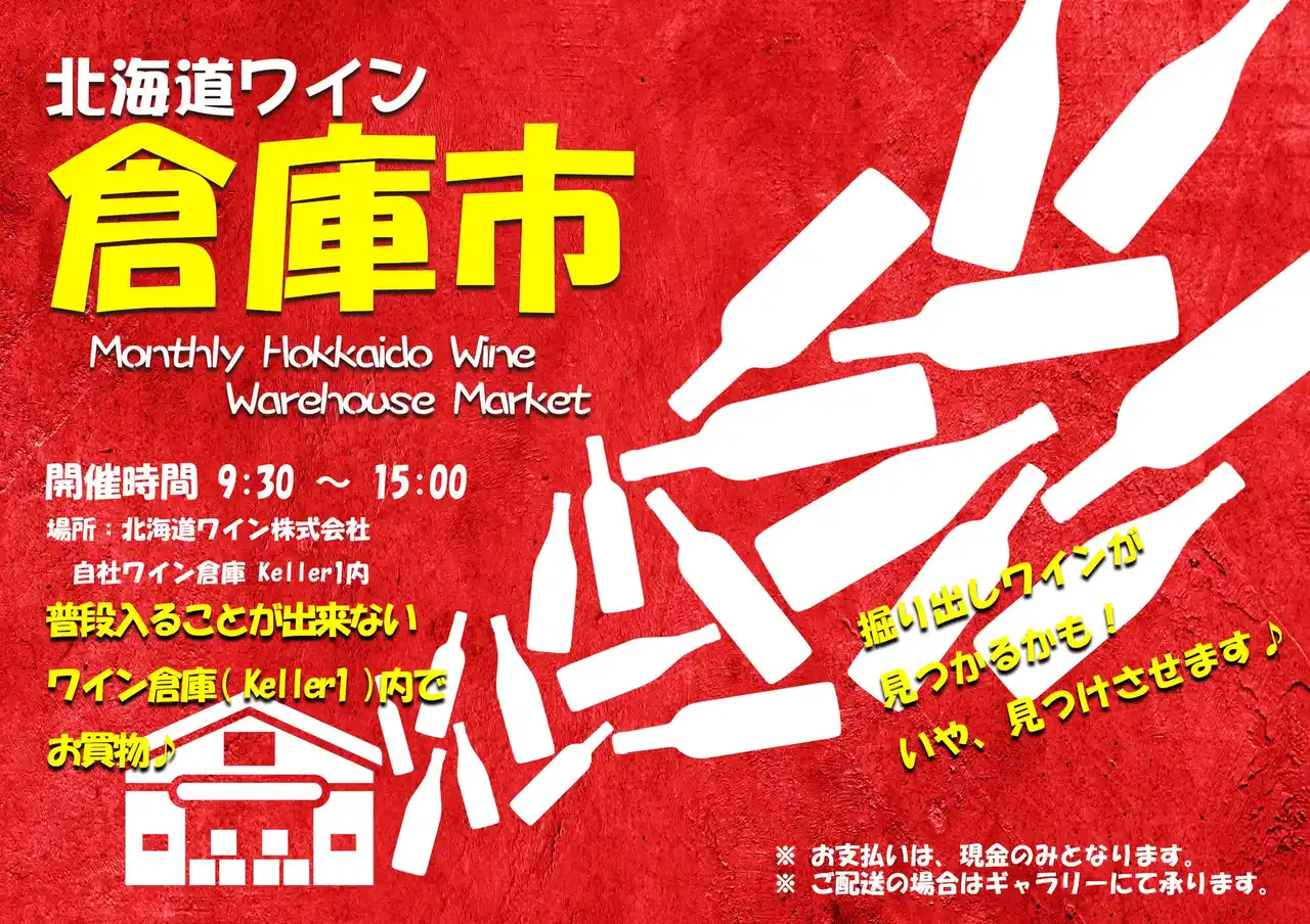 | 普段は入ることのできないバックヤード「ワイン保管倉庫」を期間限定で開放し、「倉庫市」を開催いたします。ここでは、特別価格でワインセットや箱買いワインなど、数量限定のお得な商品を販売。この機会をお見逃しなく!倉庫の中をのぞいてみるだけでも楽しいイベントです。見学だけでも大歓迎です。 | |||