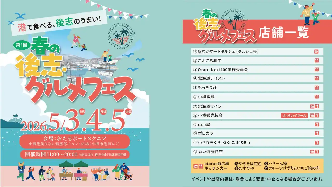 | 「海と人がつながる場所」おたるポートスクエアにて開催される「第1回 春の後志グルメフェス」には、後志エリアの人気店12店舗が集結。当社も出店企業として自社ワインの魅力を発信いたします。 | |||