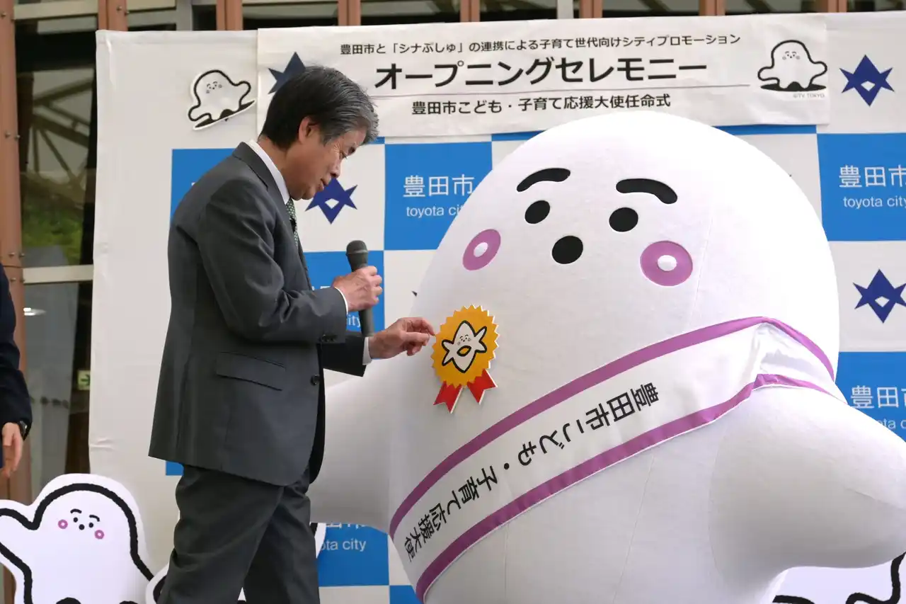 | 4月27日(月)に愛知県豊田市の鞍ケ池公園で、”大使”の任命式とオープニングセレモニーが行われました。豊田市の太田稔彦市長は『シナぷしゅ』との連携開始に際し、「『シナぷしゅ』は知名度が抜群。自治体とのコラボは豊田市が初めてと聞き、とても名誉なことだと思っています。これから『シナぷしゅ』を通じて情報発信していくことで、豊田市の子育て施策や事業について、市民の皆様にわかりやすく伝えていけることを期待しています。」とコメント。 | |||