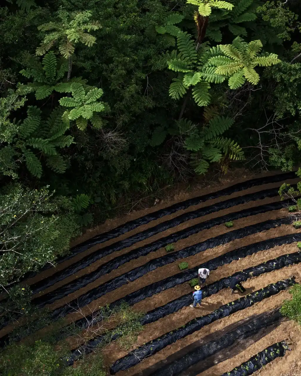 | 「RYUKYU BLUE(R)」と名付けられたその色は、化学染料では再現することのできない深みと揺らぎを持ちます。 自ら畑を耕し、藍を育て、染料の製造から染色加工までを一貫して行うことで、素材の本質と向き合い続けています。 | |||||||||