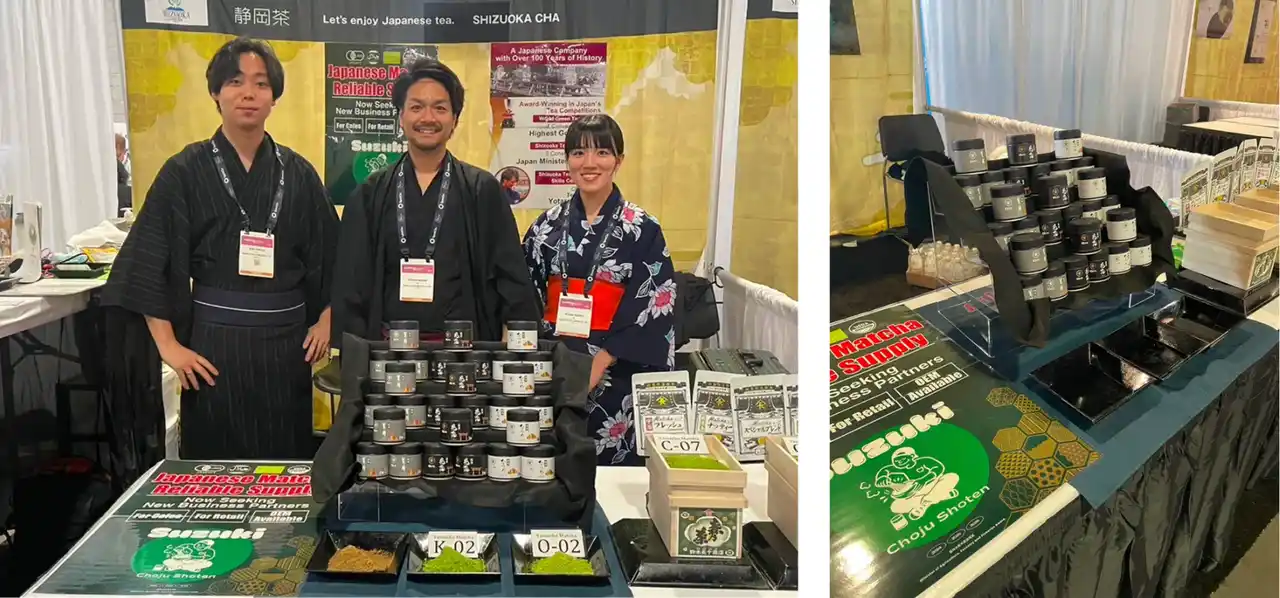 今回の出張の核となったのが、北米最大級の茶専門展示会「World Tea Expo」への出展だ。同社は提携サプライヤーである鈴木長十商店のブース出展をサポートする形で参加し、世界各国の茶業界関係者やアメリカ国内でカフェ・卸事業を展開するバイヤーとの商談を積極的に推進。展示会を通じて新たな受注獲得につなげることに成功した。 |