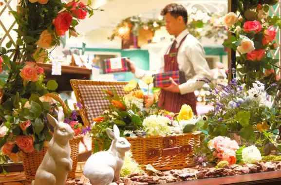 ギフトショップ「ビクトリアンアレー」では、ローラアシュレイキッチングッズ等のローズ関連雑貨を販売いたします。 |
