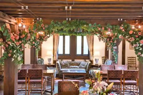 期間中はレセプション、レストラン等にローズをテーマにした装飾が施され、一層華やかな雰囲気をお楽しみいただけます。フォトスポットとして記念撮影も可能です。 |