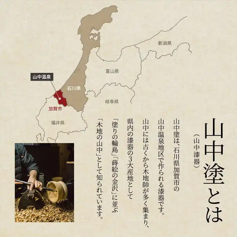 山中漆器は、木の温もりを活かした「挽物(ひきもの)」の技術で知られ、日常使いから芸術品まで幅広いラインナップが魅力です。 |