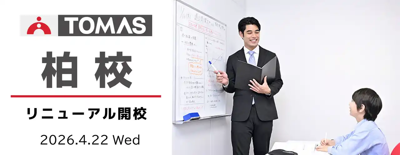 株式会社リソー教育グループ(本社:東京都豊島区、代表取締役:天坊真彦)の子会社である、株式会社TOMAS(本社:東京都豊島区、代表取締役:町田仁)は、2026年4月22日(水)、TOMAS柏校をリニューアル開校いたしました。(特設ページ:https://www.tomas.co.jp/class/kashiwa/) |