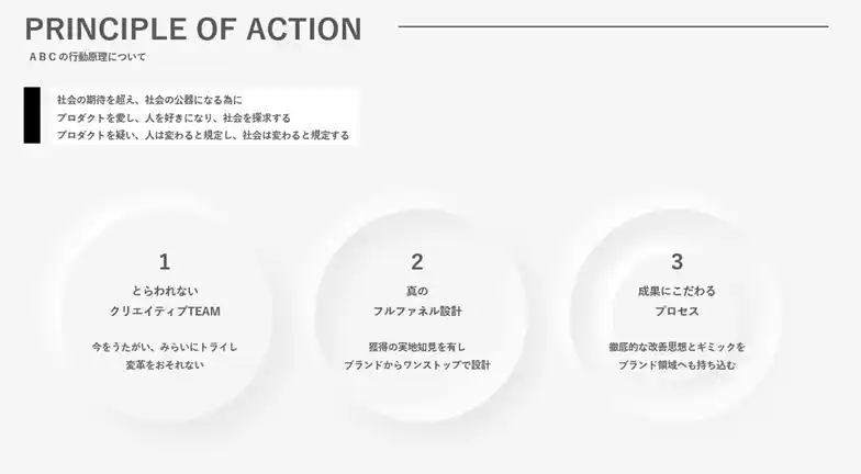A Better Caseの核となるのは、編集・言葉、デザイン、ビジネス設計という異なる領域で実績を重ねてきた3名の代表取締役です。それぞれの専門性を持ち寄りながら、ブランドと成果を分けずに考える新しいチームづくりを進めていきます。 |
