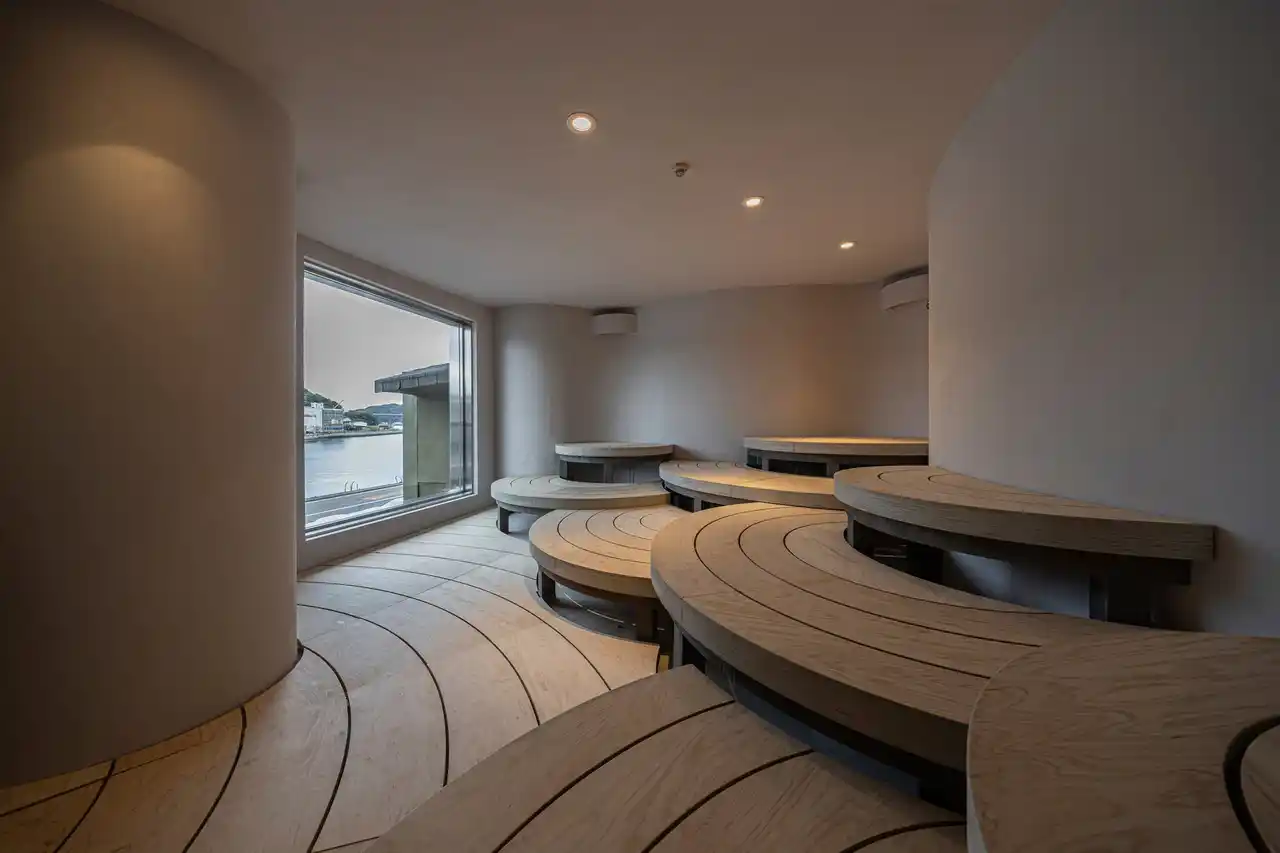 足腰湯エリアは、腰から下は温かい湯につかりながら、上半身では港町の風を感じられる新しいスタイルの休憩スペースです。期間中は、同ブレンド精油の香りも加わり、より一層リラックスした時間をお過ごしいただけます。港を眺めながら香りと熱に包まれる、呼子ならではのサウナ体験をお楽しみいただけます。 |