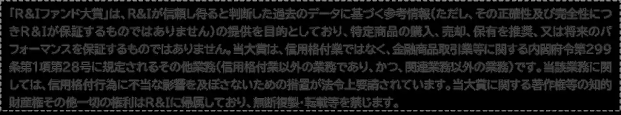 R&Iの定量評価の枠組みを活用し、客観的な基準に基づいて表彰ファンドを選定します。 |