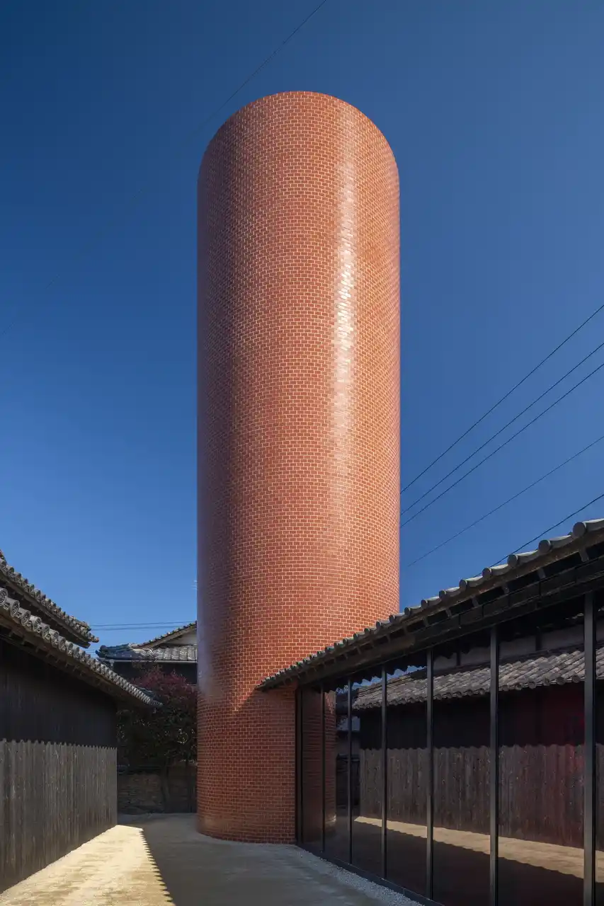 豊島横尾館の象徴的な塔は、開館当初の黒いタイルから赤レンガ色のタイルを採用することで、よりアーティストの構想に近づいた姿に刷新されました。 |