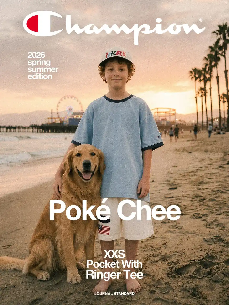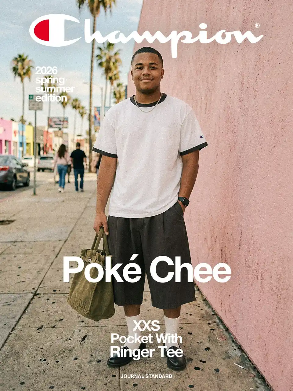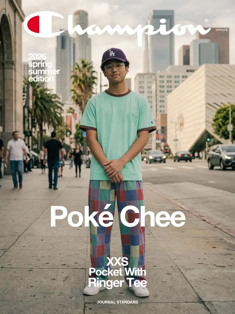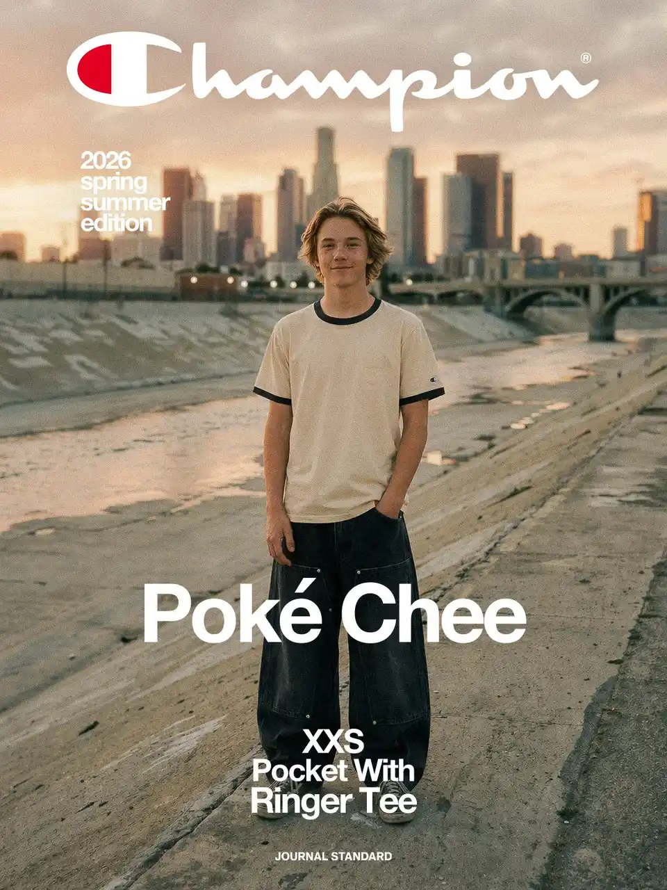 そんなChampionに、JSが別注したポケットTシャツ、通称“ポケチー”が登場。ベースとなるクラシックなリンガーTの佇まいはそのままに、JS独自のパターンを採用し、程よくリラックス感のあるシルエットへとアップデートしています。 |