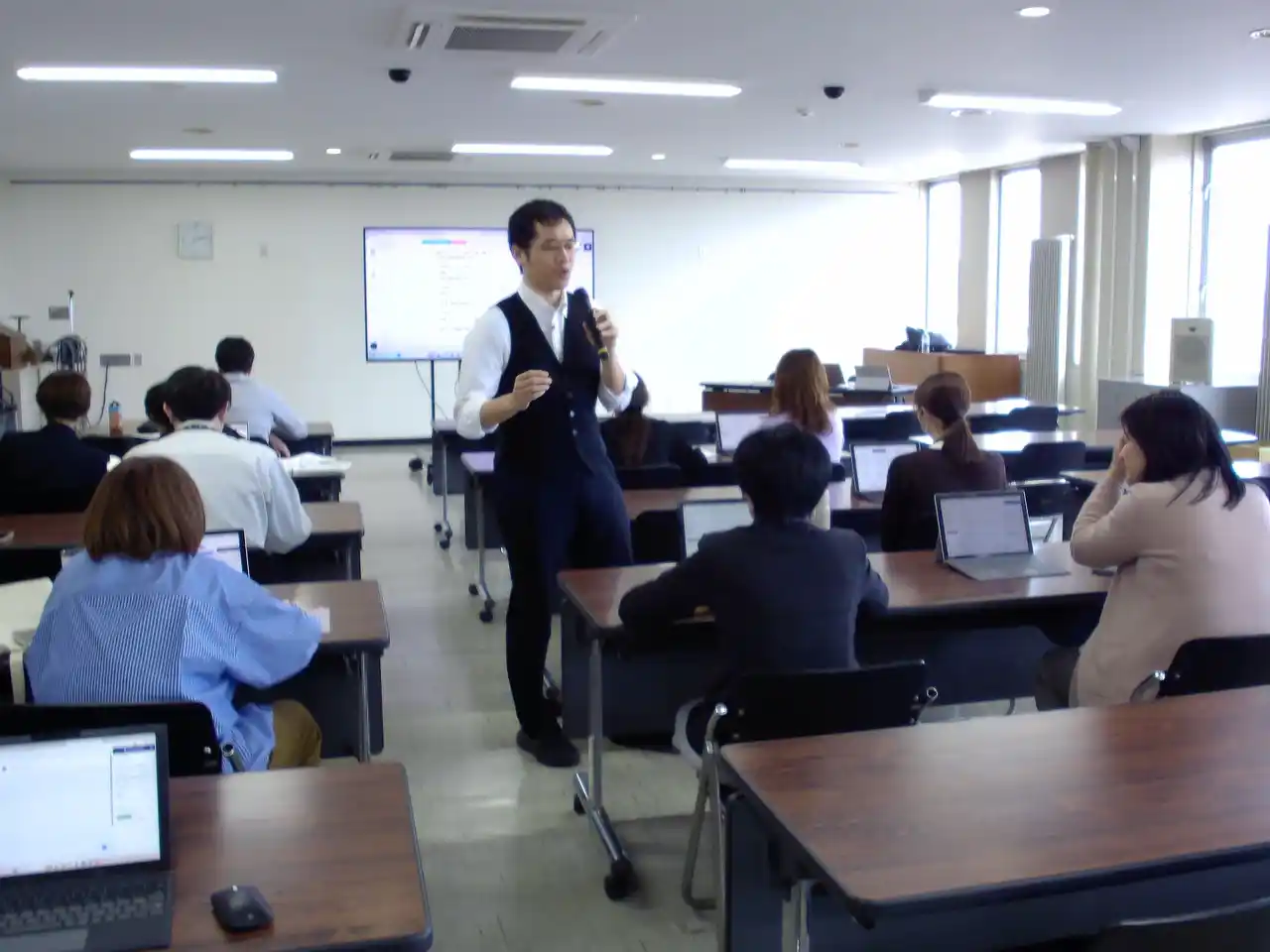 年度初めの慌ただしい時期ながら、「まずはしっかり使い方を学びたい!」という意欲が会場全体から伝わってきました。「研修内容はアーカイブで録画しています」と周知していたにもかかわらず、ノートを持参し一言一句メモを取る職員が多く見られました。 |