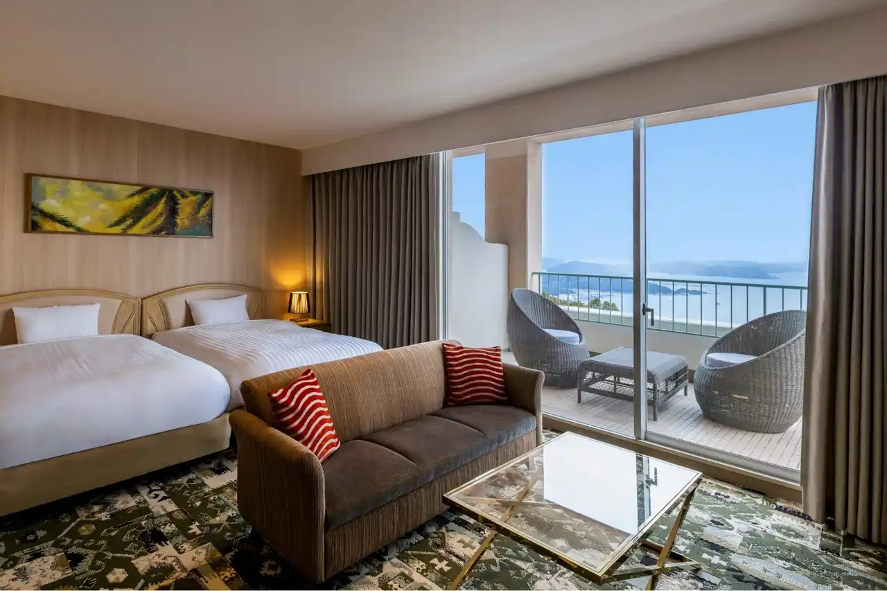 | 2026年4月に開業30周年を迎えた弓張の丘ホテルは、長崎県佐世保市、西海国立公園・九十九島の海と緑に囲まれた弓張岳山頂近くに位置するリゾートホテルです。館内のレストランや展望浴場からは、九十九島の雄大な景色と、佐世保市街地から港へと広がる夜景を一望でき、訪れる人に特別なひとときを提供してきました。 | |||||||||