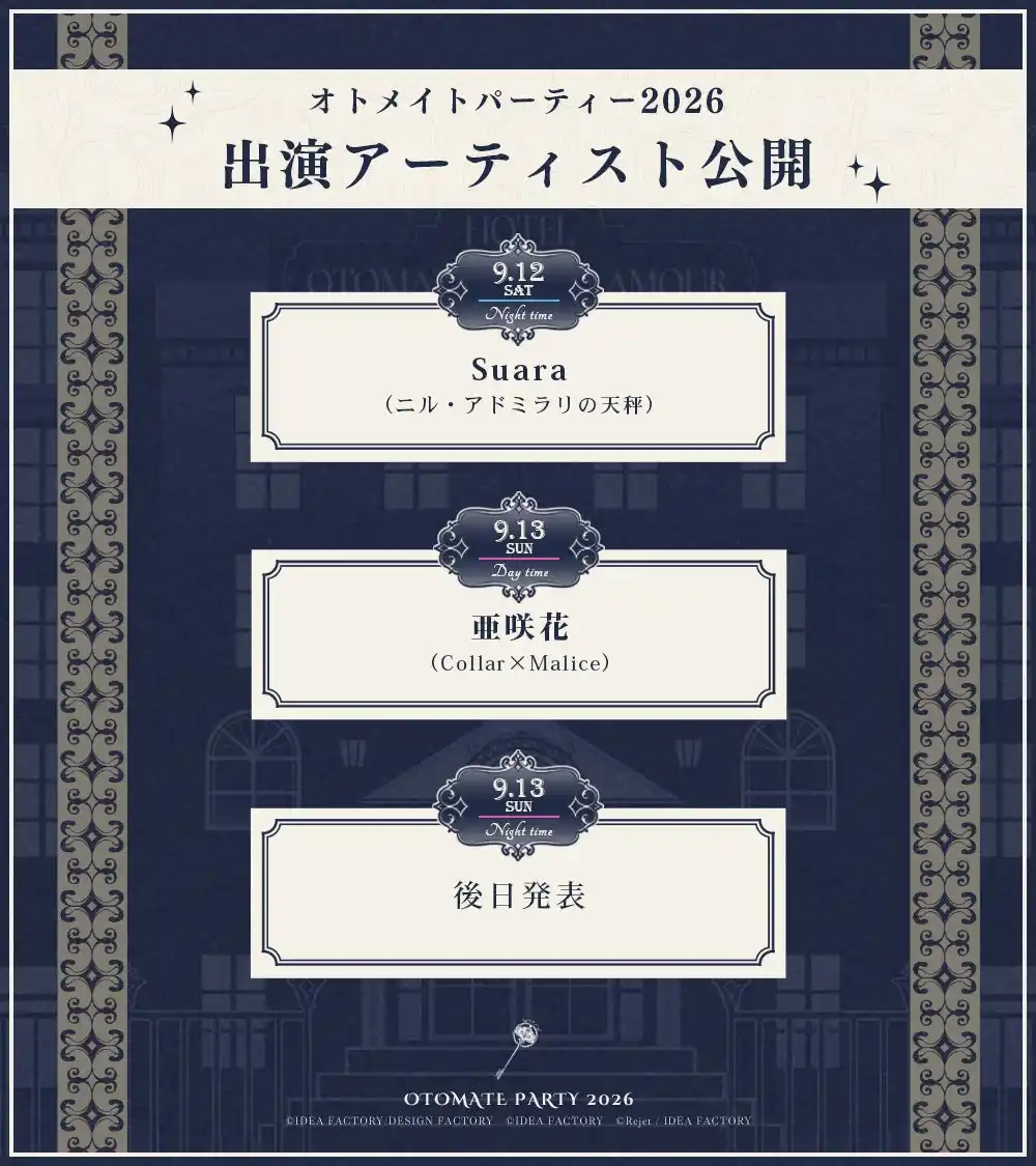 | ・大迫力のアーティスト歌唱が復活!オトメイトパーティー2026にアーティストの出演が決定! | |||