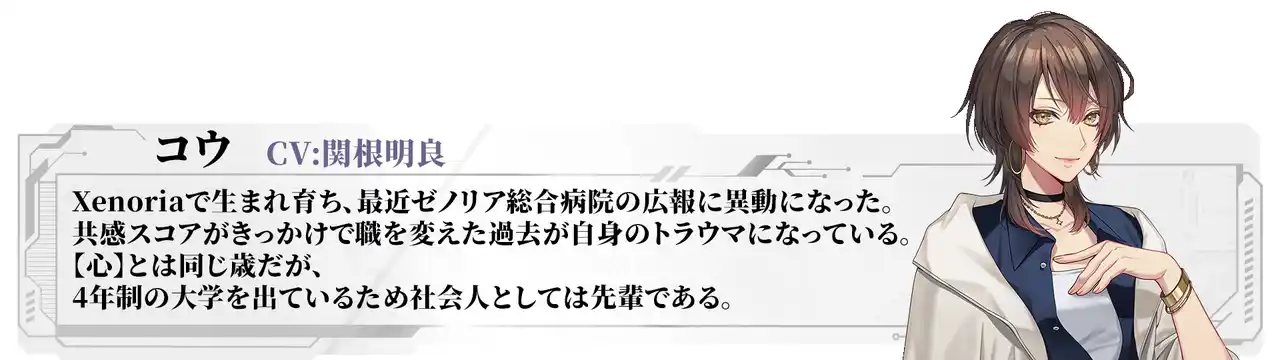 『Xenoria(ゼノリア)』は世界初の完全AI管理都市として栄えている街。AIによって管理されることで、自分に合った最高の環境で生活できることから近年人気の都市になってきている。 |