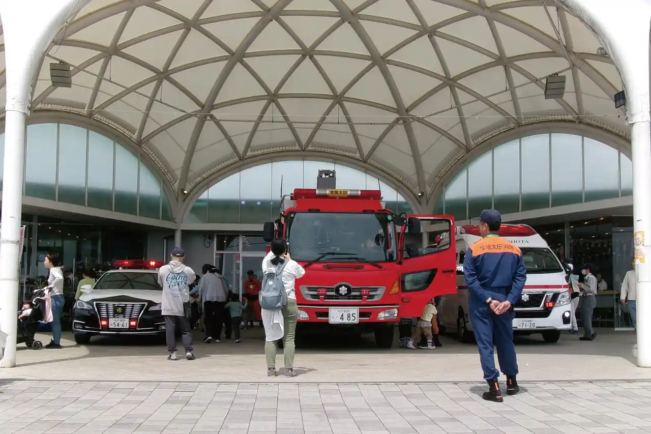パトカー・消防車・救急車・自衛隊車両・宅配車両等の展示、お子様向けなりきり体験等を行います。 |