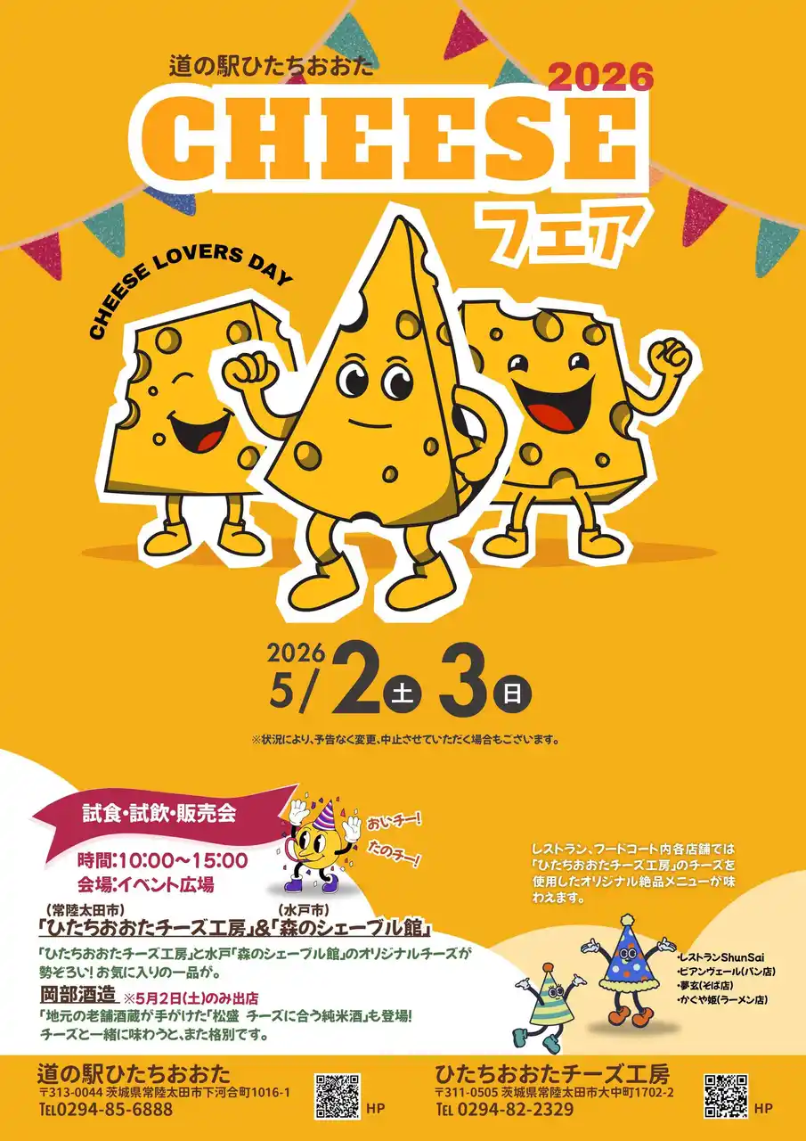 「ひたちおおたチーズ工房」と「森のシェーブル館(水戸市)」によるオリジナルチーズの限定販売などを行います。 |