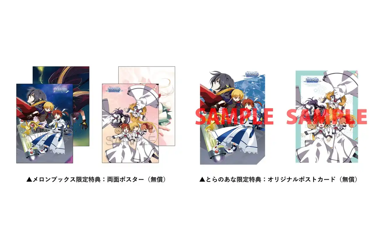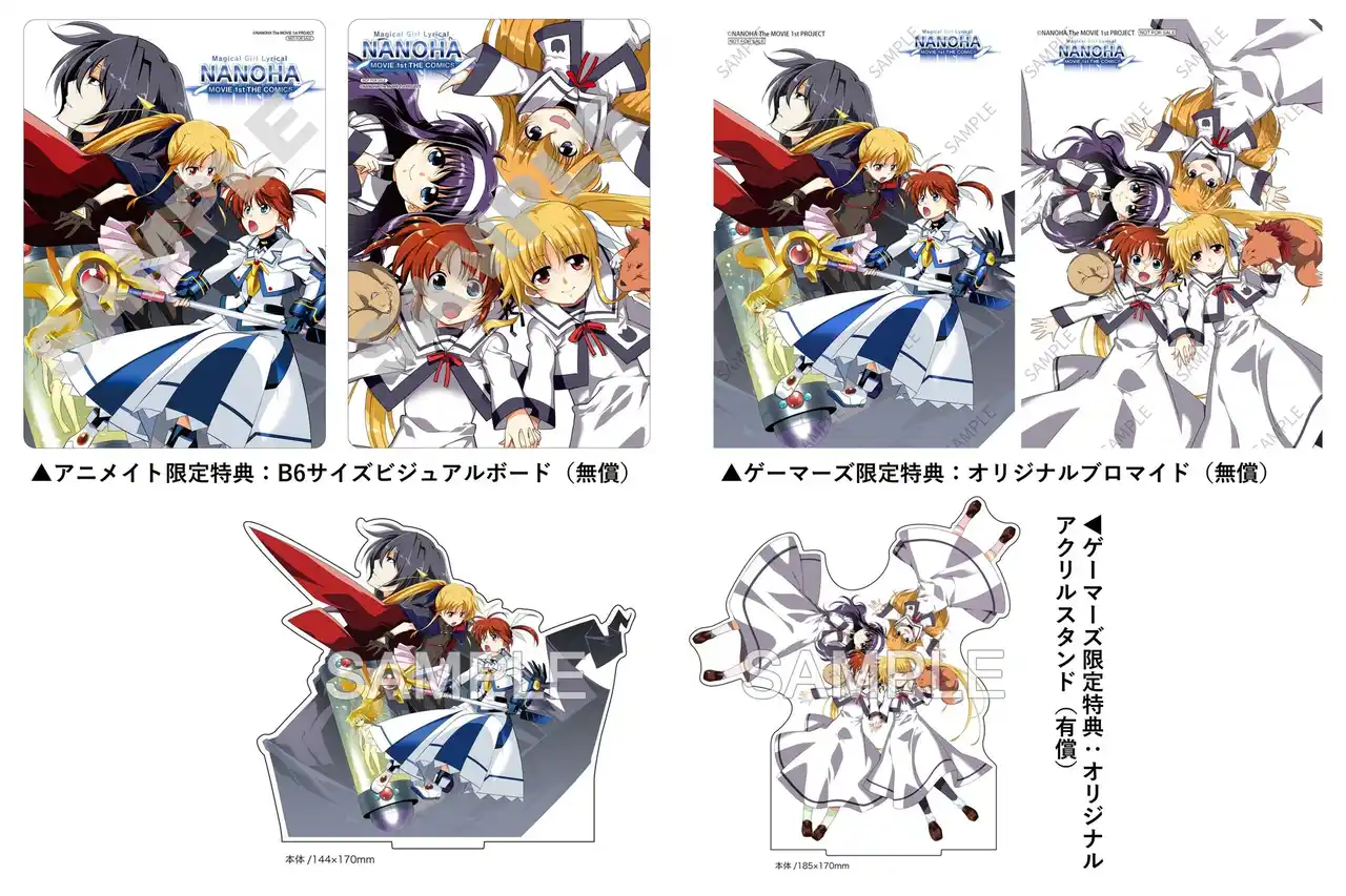 | ノーラコミックス『魔法少女リリカルなのはMOVIE 1st THE COMICS 1・2 新装版』をそれぞれご購入いただいたお客様に、限定特典をプレゼント! ここでしか手に入らないオリジナルアイテムばかりです。詳細は下部、各販売サイトにてご確認ください。 | ||||||||||||||