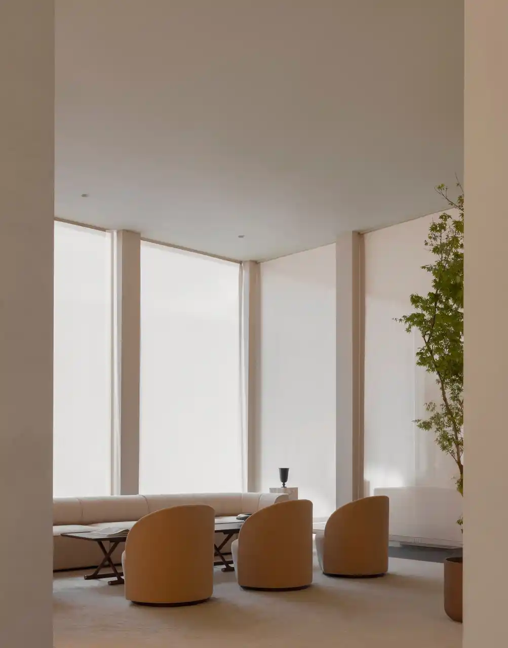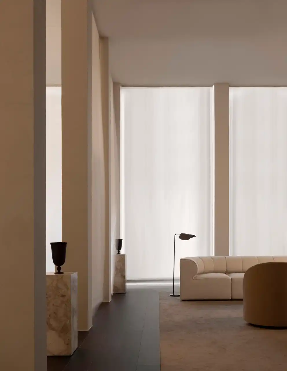 コペンハーゲンを代表するデザイン集団 ノームアーキテクツの共同創設者 ヨナス・ビエレ=ポウルセンが、アートディレクターのクリスチャン・モラー・アンデルセンと協働してデザインしたこの460平方メートル の空間は、イタリアの歴史主義建築と1930年代モダニズムの幾何学的な秩序から着想を得ています。高くそびえる列柱がゲストをいくつもの空間へと導き、リズム、プロポーション、素材の調和によって、静けさの中に温かみのあるオドーならではの雰囲気が生み出されています。 |