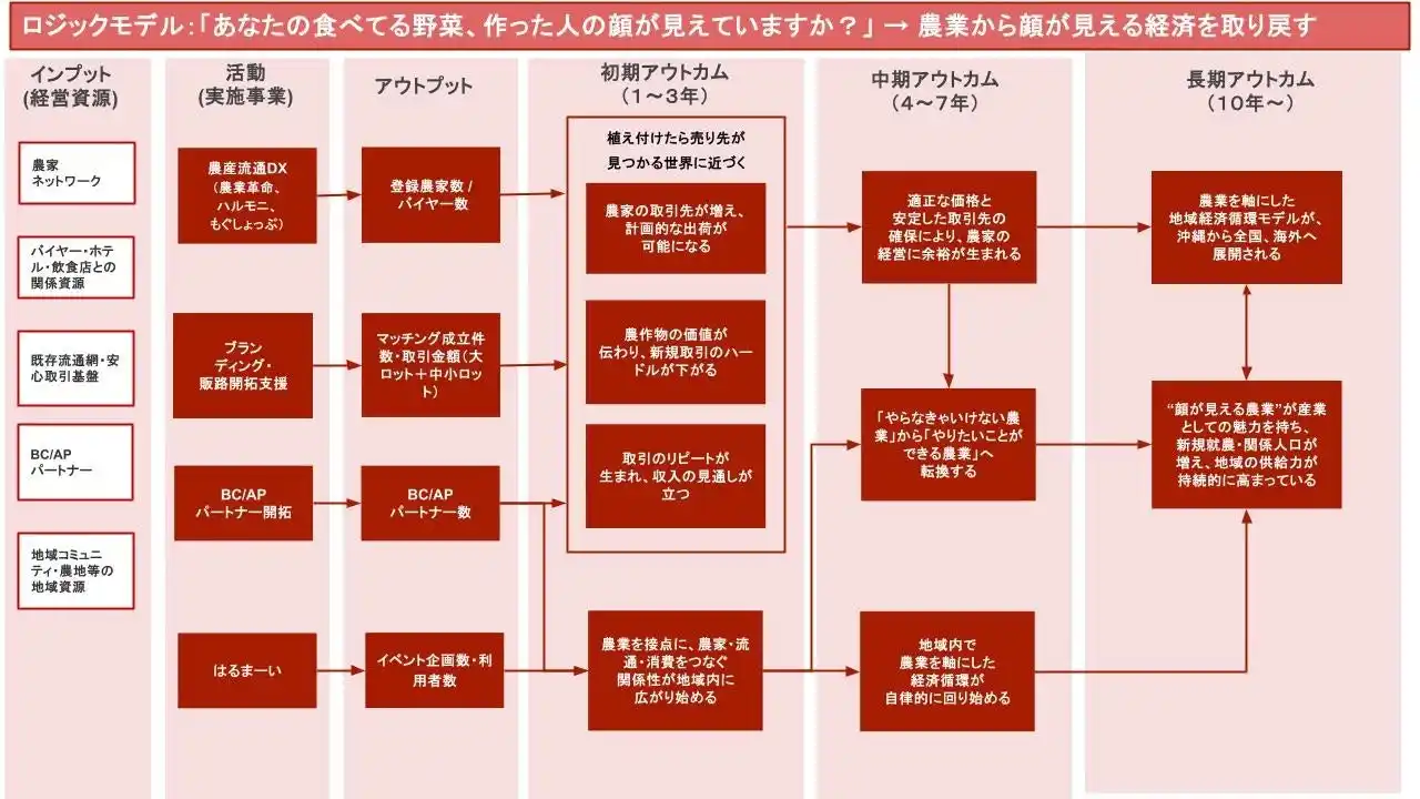 | 同社は、「農業から顔が見える経済を取り戻す」というミッションのもと、農家が適正な価格と安定した取引先を確保できる環境を実現し、新規就農者や関係人口の増加を通じて、農業を軸とした地域経済の自律的な循環モデルを沖縄から構築することを目指しています。 | |||