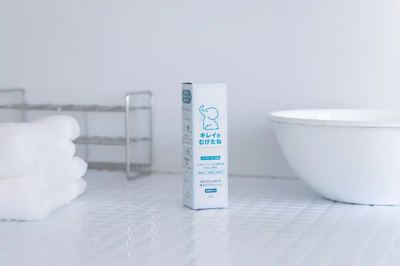 『キレイにむけたね』は、男の子のデリケートゾーンという非常に繊細な部位への使用を前提に、やさしさと保湿力のバランスを追求して開発されました。刺激をできるだけ抑えながら、乾燥しやすい肌をしっかり守る設計だからこそ、大人の肌にも心地よくフィットします。 |