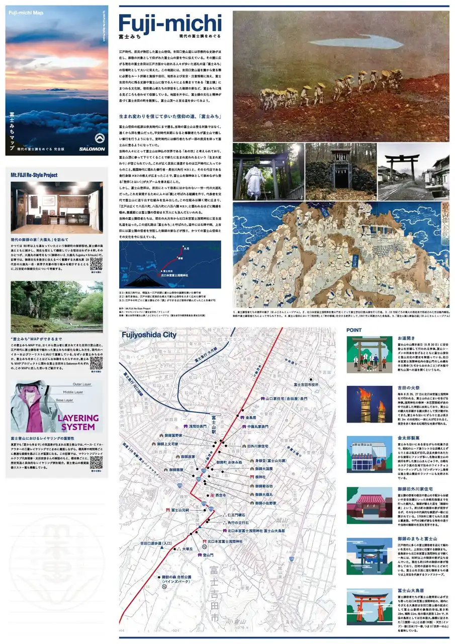 サロモンと富士吉田市が連携し世界文化遺産にも登録されている富士山を含めた大自然や富士吉田市が誇る地域財産の価値や魅力を再発掘、それらをリプロデュース及び活動を展開することで新たな価値を発信していくプロジェクトになります。富士山へつながる「富士みち」へのリプロデュースを進めながら纏わる箇所や地域への活性化を図ります。それにともない同市が抱える課題への取り組みを推し進めることにより相互的な相乗効果を図っていきます。 |