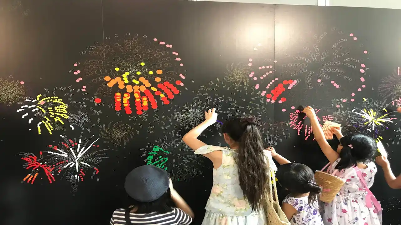 過去の丸シールアートワークショップの様子 |