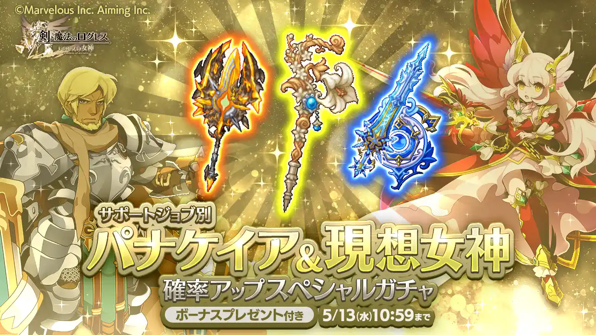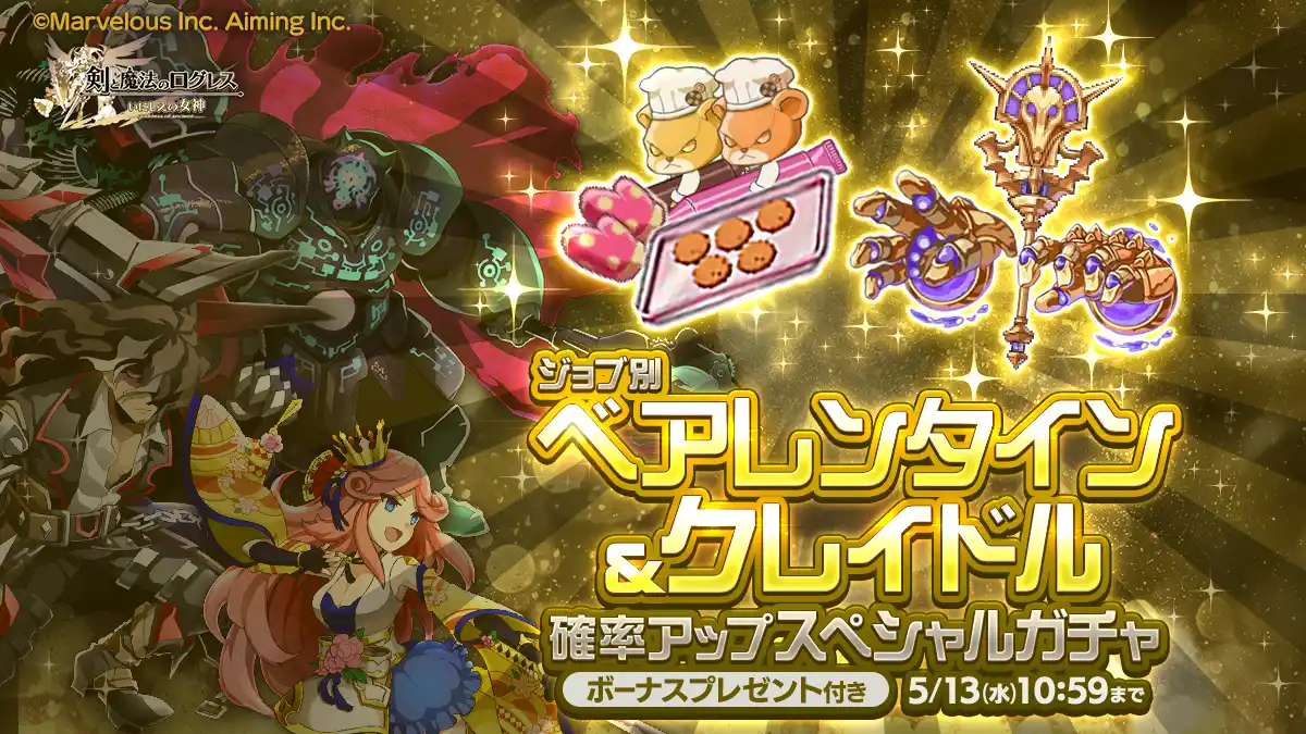 株式会社マーベラス(代表取締役社長:照井 慎一/所在地:東京都品川区)は、スマートフォン向け本格オンラインRPG『剣と魔法のログレス いにしえの女神』において、2026/4/28(火)に「ジョブ別 ベアレンタイン&クレイドル確率アップスペシャルガチャ」の販売、および「ログレス四神演義」のクエスト追加を含むアップデートを行ったことをお知らせいたします。 |