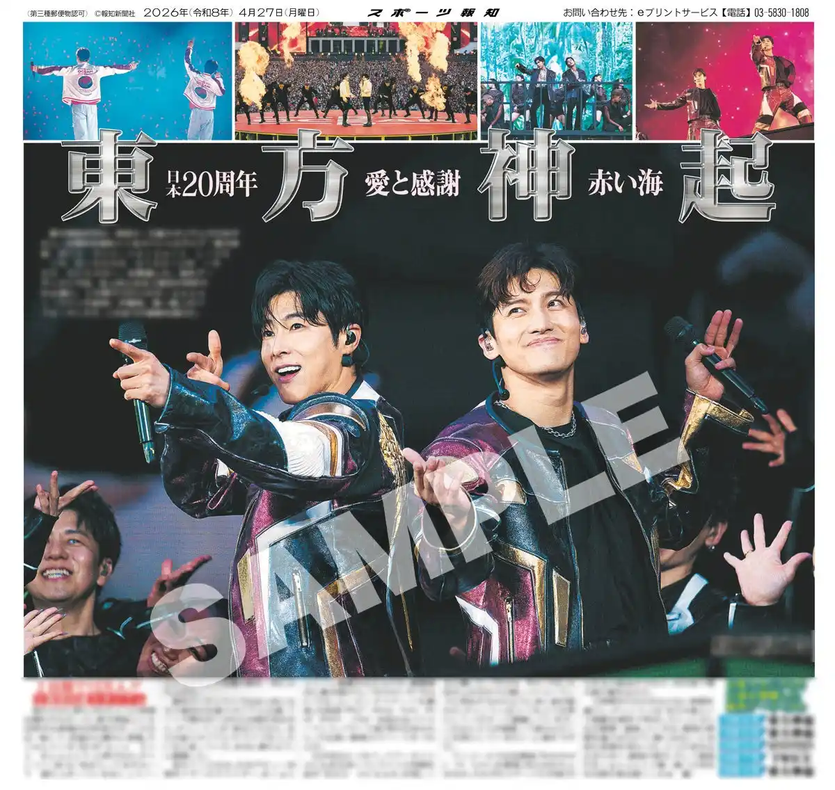 「東方神起特別1面新聞」の紙面がスポーツ報知コンビニプリントで発売中