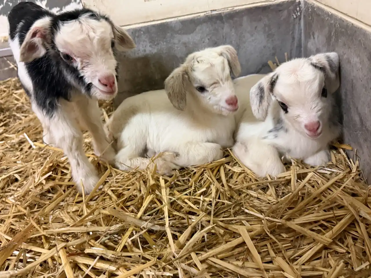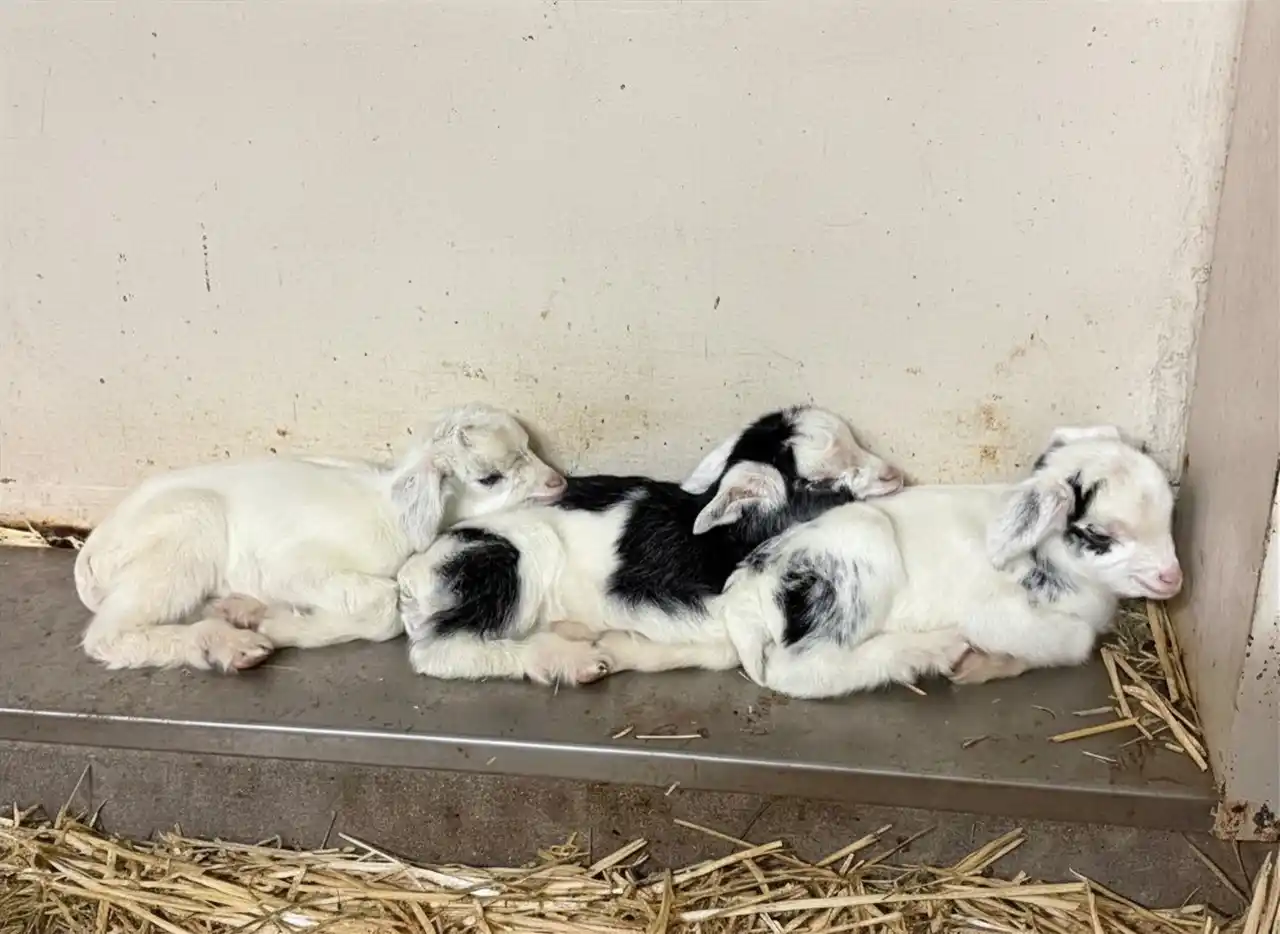 3月29日に生まれた子ヤギのこぶし、つばき、あんず。のんほいパークでは4年ぶりのヤギの誕生です。現在はのんほいパーク公式Xやinstagramで、成長日記を公開しており、屋外放飼場で過ごすための練習を始めています。GWには、かわいい3匹の子ヤギが放飼場で見られるかも。 |