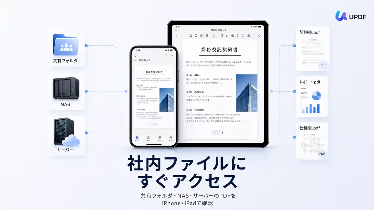 企業や専門チームでは、契約書、見積書、報告書、設計資料、仕様書などの重要な文書が、クラウドストレージだけでなく、社内共有ドライブ、NAS、ファイルサーバーなどに保存されているケースも少なくありません。UPDF for iOSは今回の対応により、こうした実際の業務環境により適したモバイルPDFワークフローを提供します。 |