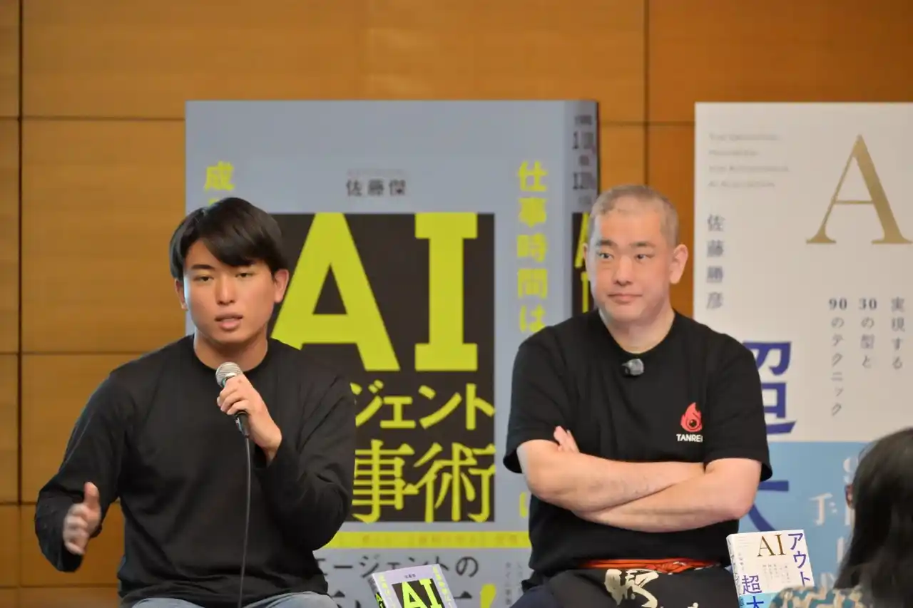 当日は会場を埋めた参加者を前に、TANREN株式会社 代表取締役の佐藤 勝彦氏(『AIアウトプット超大全』著者)と、AiWiLL株式会社 代表取締役の赤堀 亘氏とともに、AIエージェント活用の最前線について濃密なクロストークを展開しました。 |