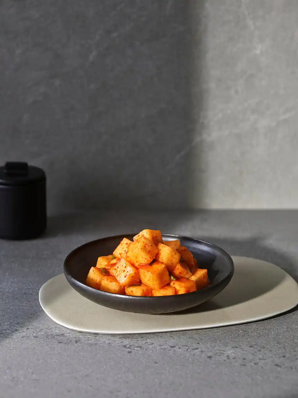 一口サイズにカットした大根にチョッカルや野菜をふんだんに加えた、食欲をそそる爽やかな酸味が特徴の風味豊かなキムチです。 |