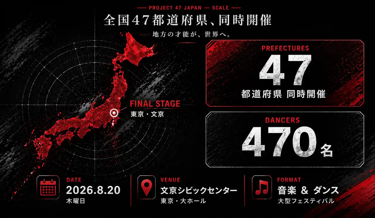 最優秀ダンサー47名とピックアップダンサー423名、合わせて計470名が、2026年8月20日(木)に東京・文京シビックセンター大ホールで開催される大型音楽&ダンスフェスティバルのステージに立ちます。 |