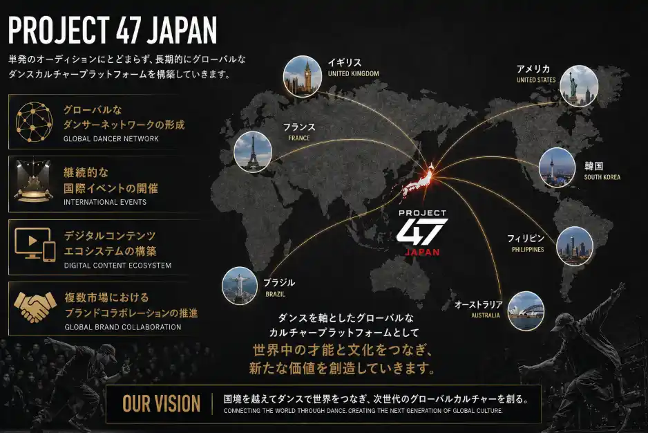 PROJECT 47は、ダンスを軸としたグローバルなカルチャープラットフォームとして開発されていきます。 |