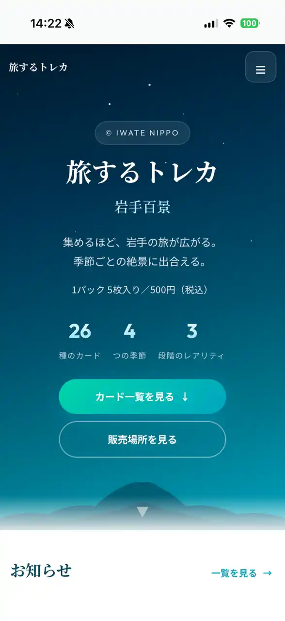岩手県内の観光スポットを紹介する「旅するトレカ 岩手百景」 |