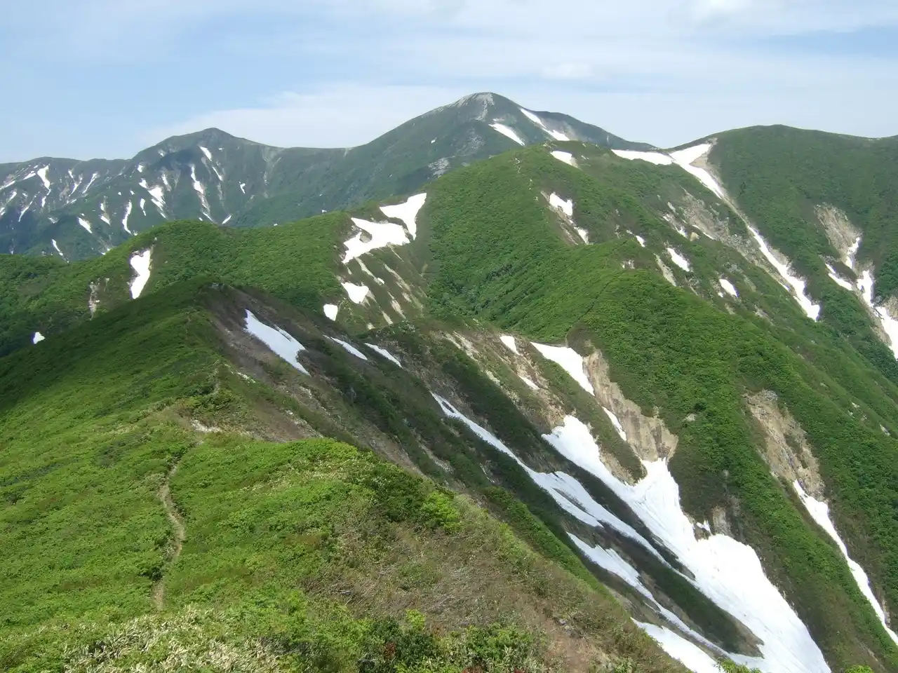 小国町側からの稜線歩きを日帰りで楽しめる上級者向けコースです。 |