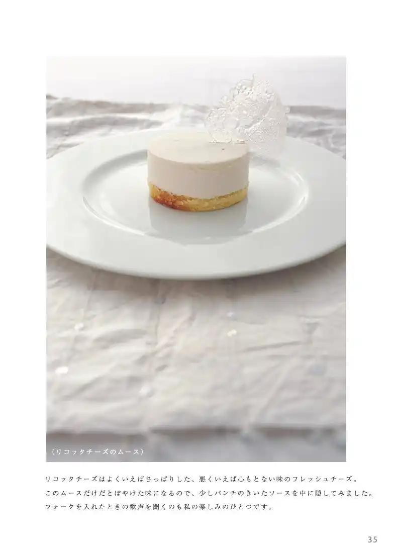 CONTENTS 【PART1】愛しの、白いケーキたち ショートケーキ・3 種 メロンショート マンゴーヨーグルトショート ベリー&ホワイトチョコショート エンゼルロール ハニーレアチーズケーキ メレンゲのプチ 洋なしとサワークリームのタルトレット 白花豆のモンブラン 【PART2】心ふるわす、白くて冷たいお菓子たち ブラマンジェ・3 種 ブラマンジェ・トラディショナル ブラマンジェ・ココ ブラマンジェ・セサミ マスカルポーネゼリー& エスプレッソコーヒー リコッタチーズのムース フロマージュブランのババロア・巨峰のコンポートと クレメダンジェ・柚子 カルピス風味のティラミス 【PART3】プレゼントしたい、白くてかわいいお菓子たち 白いガトーショコラ 白ねこちゃん~ポルポローネ~ ムースショコラブラン・ジンジャー ラベンダーのマカロン ウイスキーバニラボンボン 白桃と白ワインのムース 【PART4】気取らずいただく、白いお菓子たち カスタードクリームのサンドイッチ カルピスのジェラート ムース・ピニャコラーダ イルフロッタント |