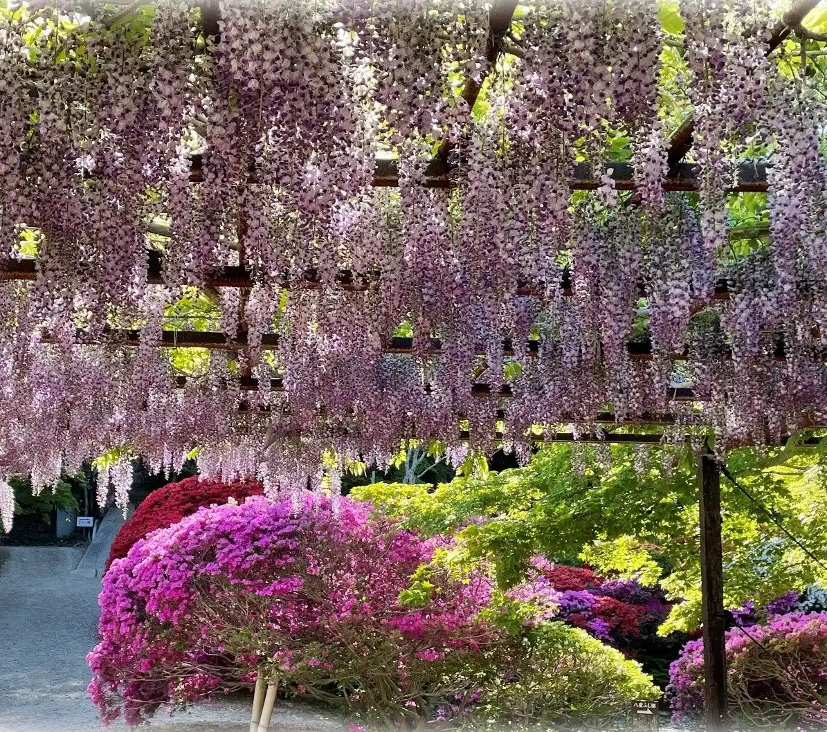 ■樹齢400年の大フジ棚と春の花々が織りなす絶景 |